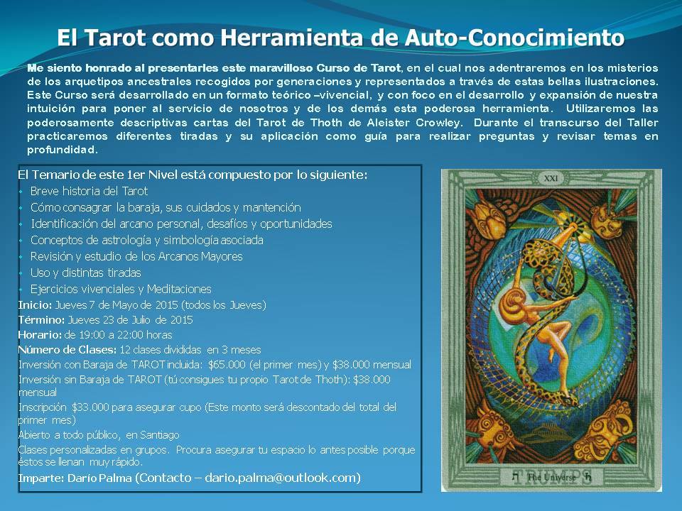 Curso de Tarot como Herramienta de Autoconocimiento, dictado por Darío Palma.